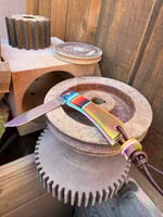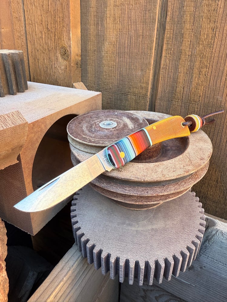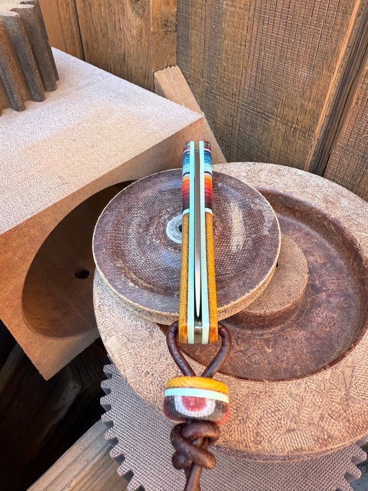 Case sod Buster jr with especial gcarta, Westinghouse canvas and Tiffany g10. Added half stop, lanyard tube and matching bead.